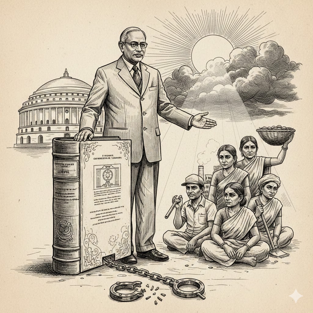 While drafting the Constitution, Dr. Ambedkar placed labor in the Concurrent List to ensure uniform laws and alignment with international standards56. His foresight abolished and outlawed bonded labor in the Constitution.
