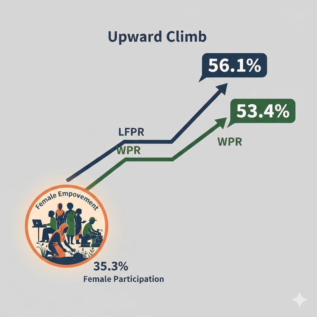 The Periodic Labour Force Survey (PLFS) monthly bulletin, published by the Ministry of Statistics and Programme Implementation (MoSPI), revealed that the female Labour Force Participation Rate (LFPR) for those aged 15 and above rose to 35.3% in December. This marks a sustained increase from mid-year levels, edging up from 35.1% recorded in November.