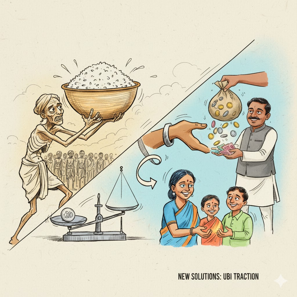 Under UBI, every Below Poverty Line (BPL) household would receive a fixed monthly cash transfer — replacing a maze of overlapping and corruption-prone welfare schemes. Advocates say it offers: